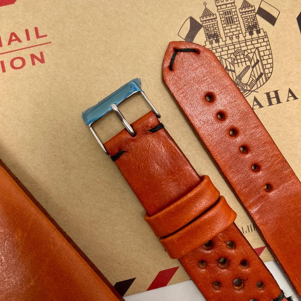 Our best-selling classic slim bifold (holds up to 10 cards + 8 bills) in Cognac leather with contrasting black stitching + matching cognac 22 mm rally strap with polished stainless steel buckle.